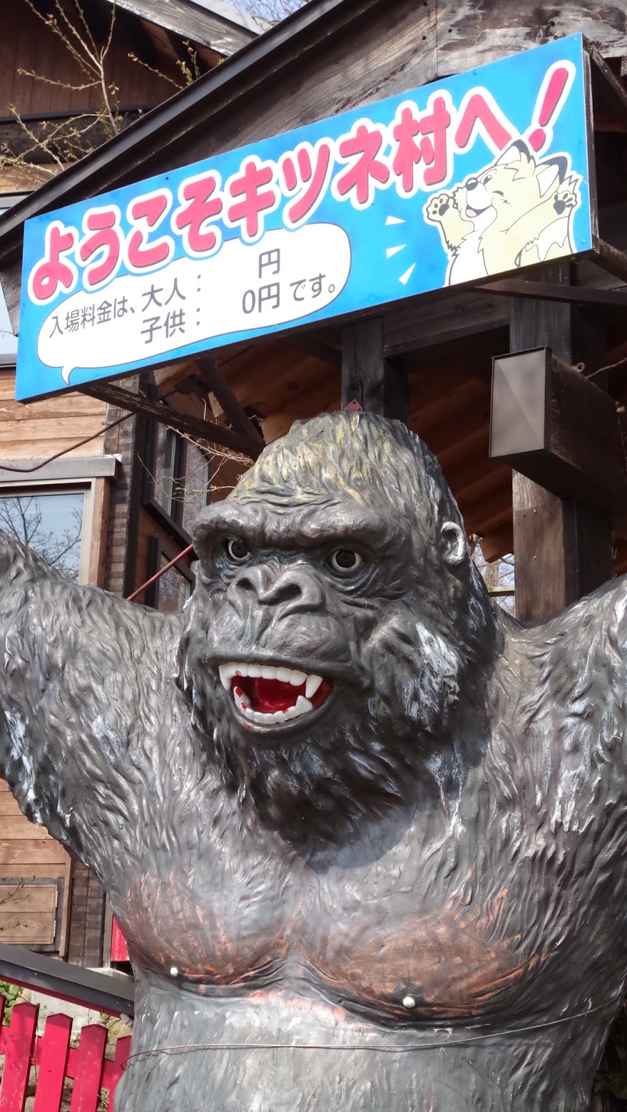 キツネ村に行くと、最初に出迎えてくれるのが何故かゴリラ。